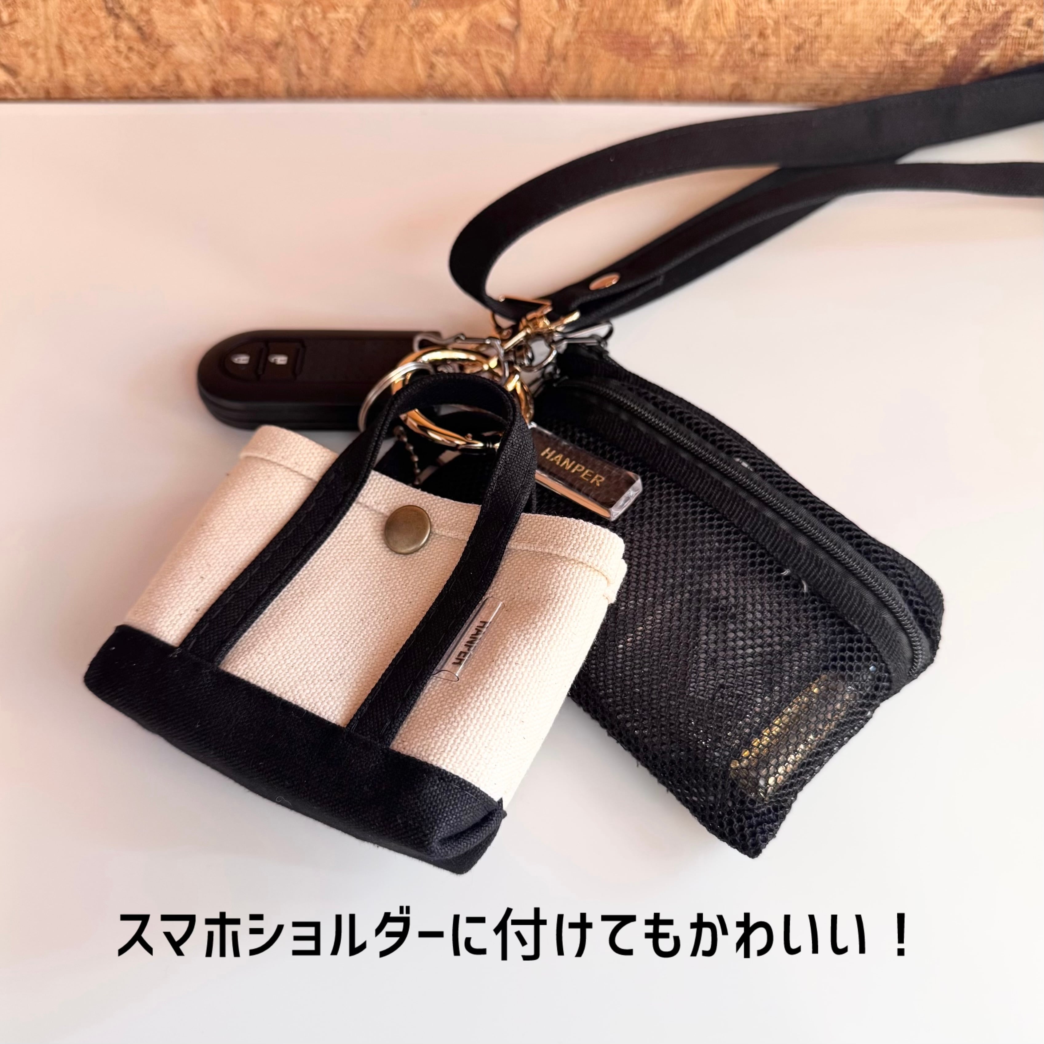 このベビートートは、小物収納にも便利で、AirPodsやスマートキー、カードなどがすっぽり入るサイズ感。バッグやポケットに入れて持ち歩いたり、付属のチェーンを使えば、バッグチャームとしてもお楽しみいただけます。