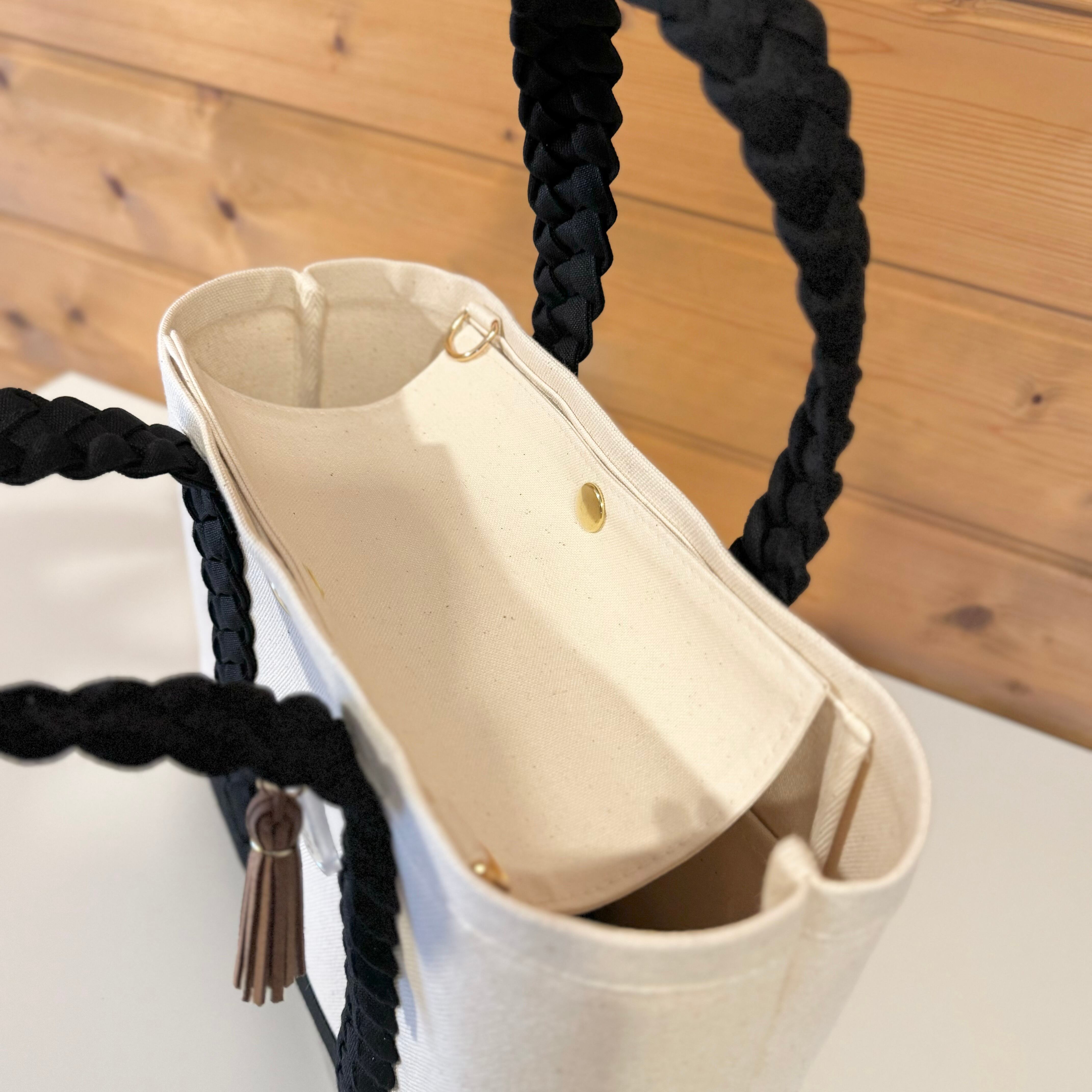 持ち手と底部分は11号生地を使用しています。